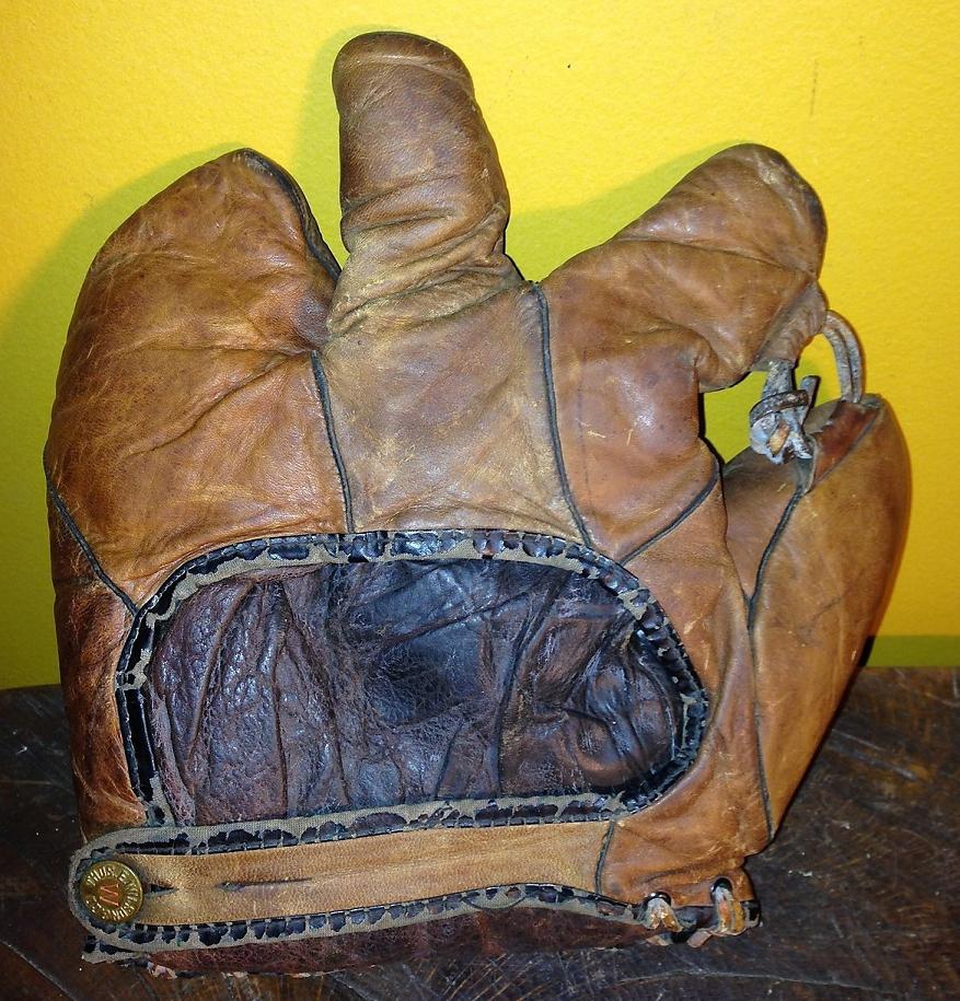 An interesting 1915-20 Reach Catchers mitt sold for $35 on ebay. The reinforced palm looks to be authentic with the way it ties into the piping and grommets. Some damage to the back side kept the price down.