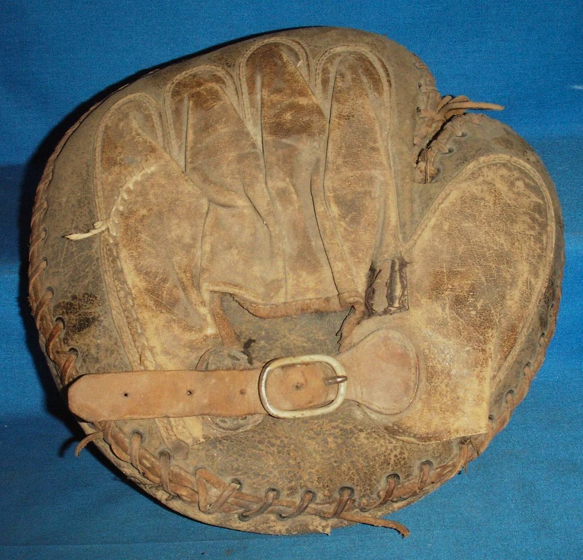 A rare 1920's double buckle Winchester base mitt sold for $499. It has a fair amount of wear but looks all intact. Looks to have been made by Wilson and very similar to the Ray Grimes model 551.