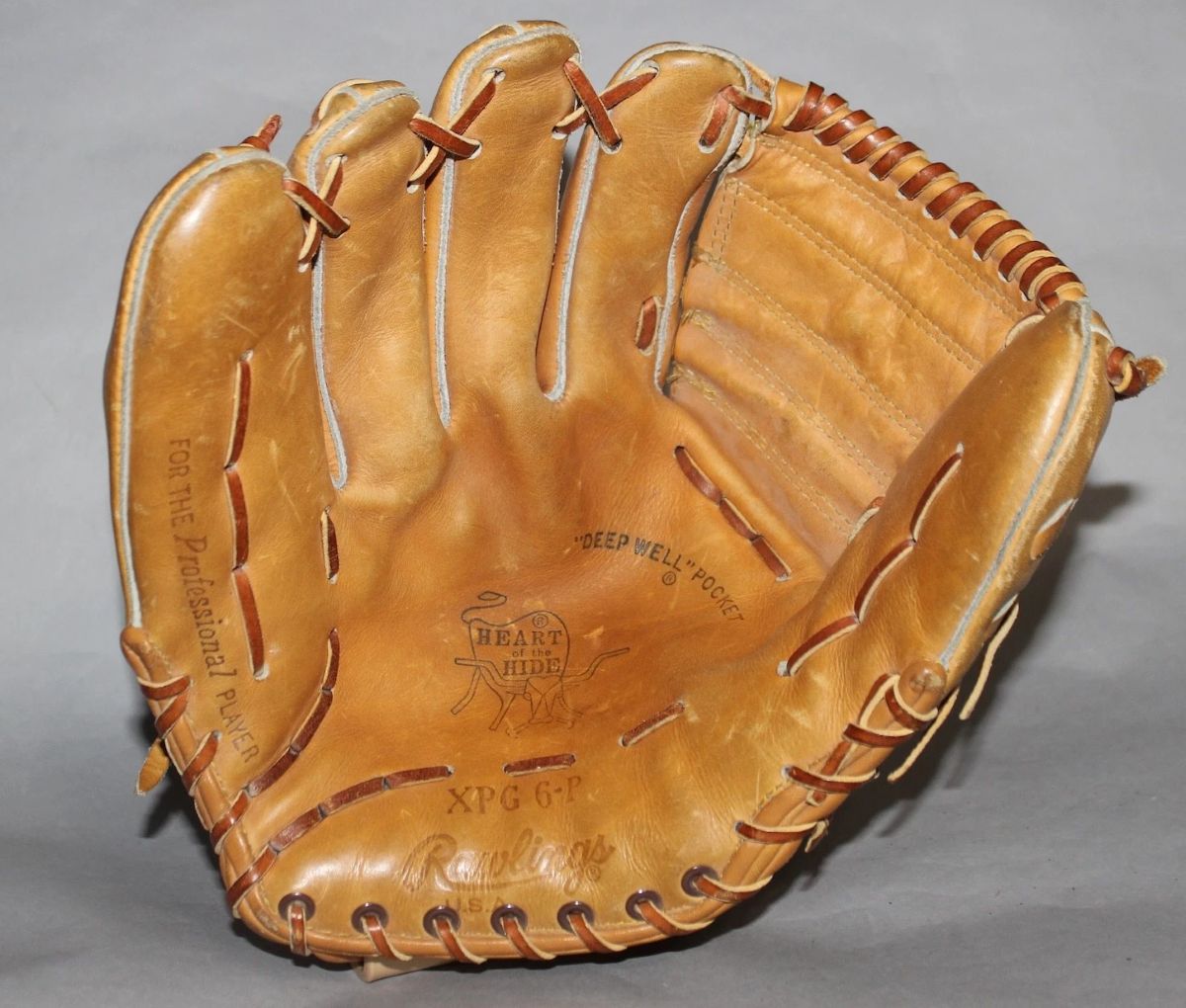 A mid 70's Rawlings XPG6P glove sold for $161. Distinguished by the "Wingtip" back panel and solid web. The glove is an updated design from the 1960's XPG6 gloves.