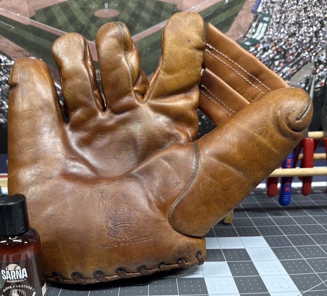 A misidentified Spalding glove sold for $37. It's a 1938 Robert Rolfe model 222-12 glove in pretty nice condition. The seller added new webbing and it's reminiscent of Goldsmith models of the period. The period correct Rolfe glove actually had a lace web.