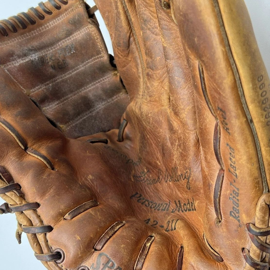 A 1963 Spalding Frank Bolling model 42-211 glove sold for $375? A one year only model with the radial laced heel. The '62 42-205 Bolling glove with the Lazy S lacing is still the better choice if you're collecting high end gloves. That glove was an MLB favorite..