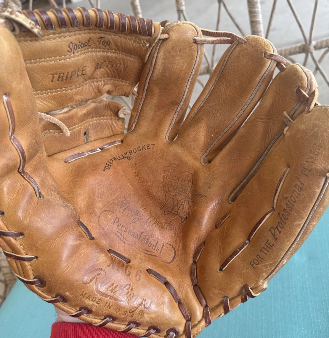 A pre-1964 Rawlings Mickey Mantle model XPG6 glove sold for $399. The glove's in good snape and features the original style facs. sig.