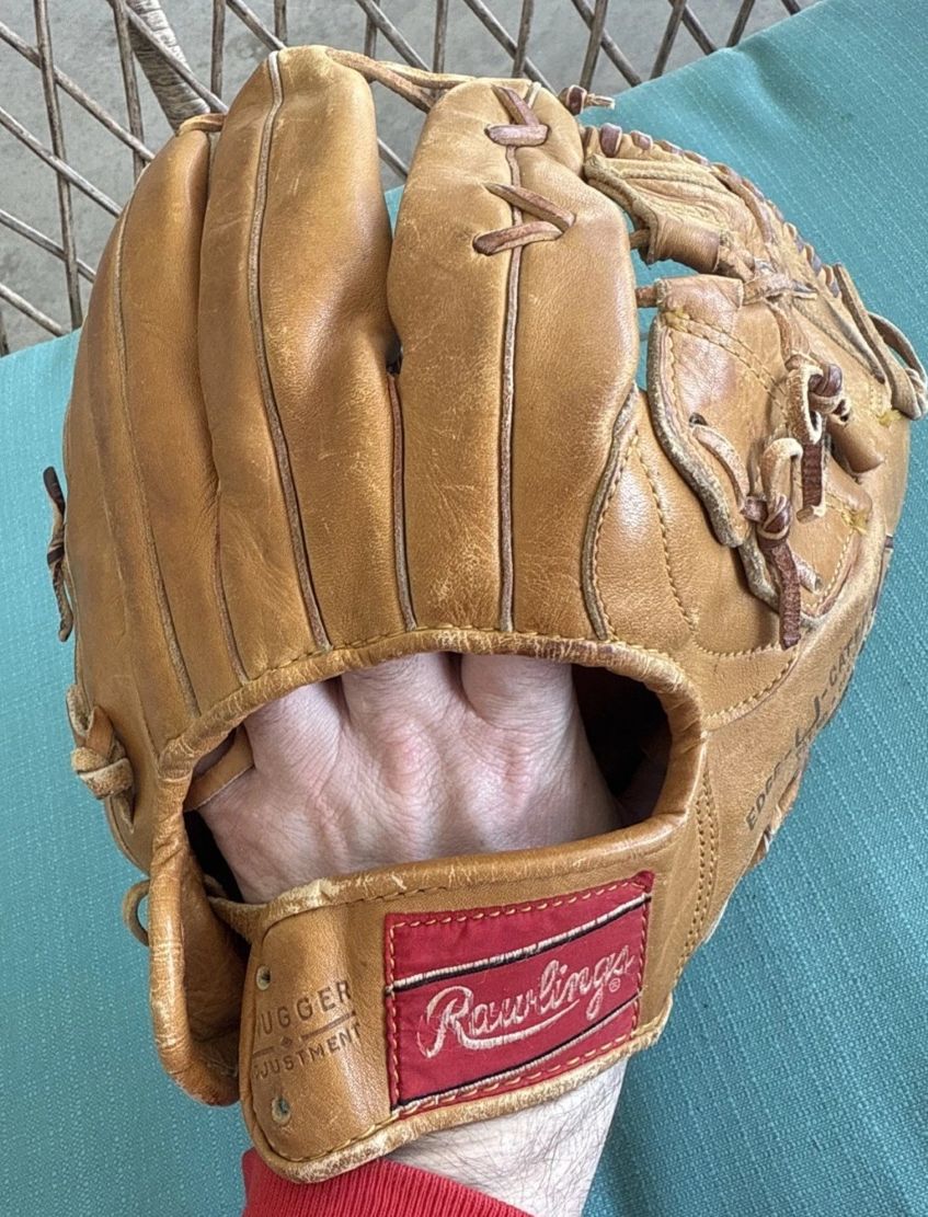 A teens full sewn web Reach glove sold for $143. The glove has been well used but looks to be intact.
