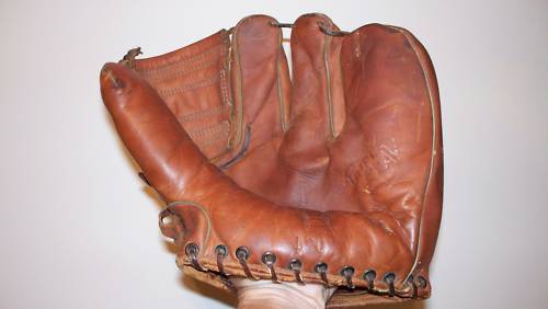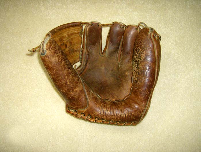 This is a real nice Higgins "Bob Buhl" model 6-finger glove and a nice collectible. This early 6-finger model was made by Wilson as the "Ball Hawk 6" model and was one of their nicer models. Went for $26 on ebay. "Bretman" pointed out an August posting regarding an "under the radar" Babe Ruth glove on ebay. This too, but in a very minor way, is another "Stealth Bomber"!