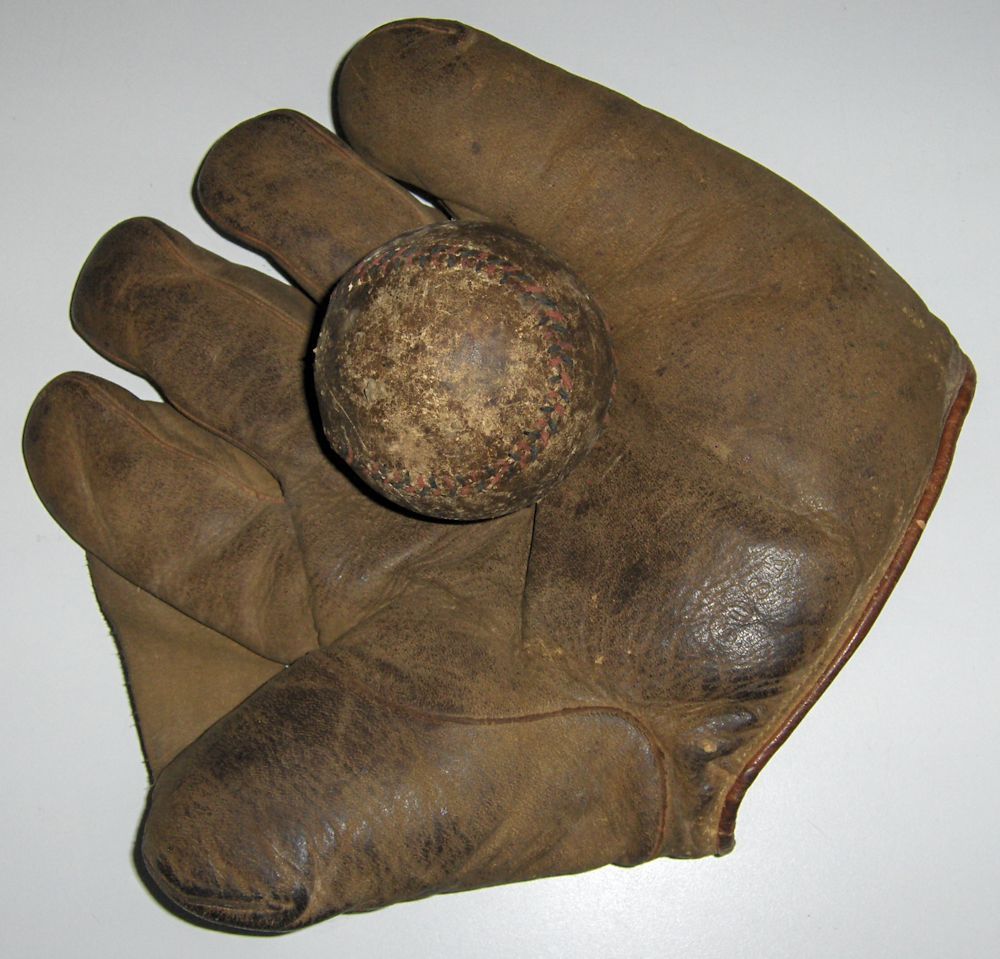 The original sale of the full web WIlson model 605 glove last month was cancelled and just resold for $318, a more reasonable price than the original $560. It is a nice pre 1920 model with a super cloth patch and looks well taken care of. The Early black and red stitched ball is also pretty nice. Too bad no markings on it.