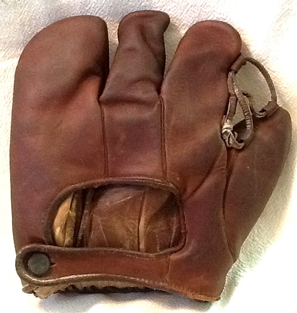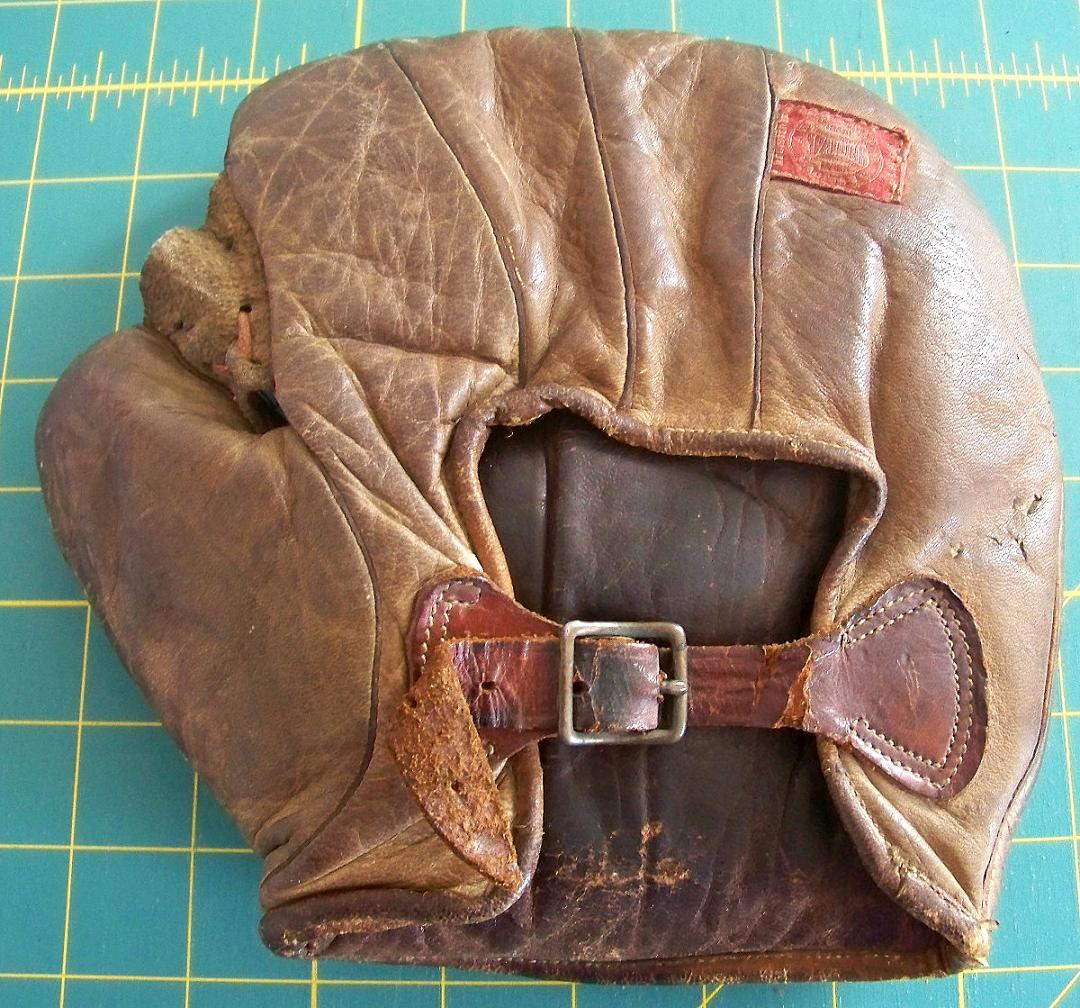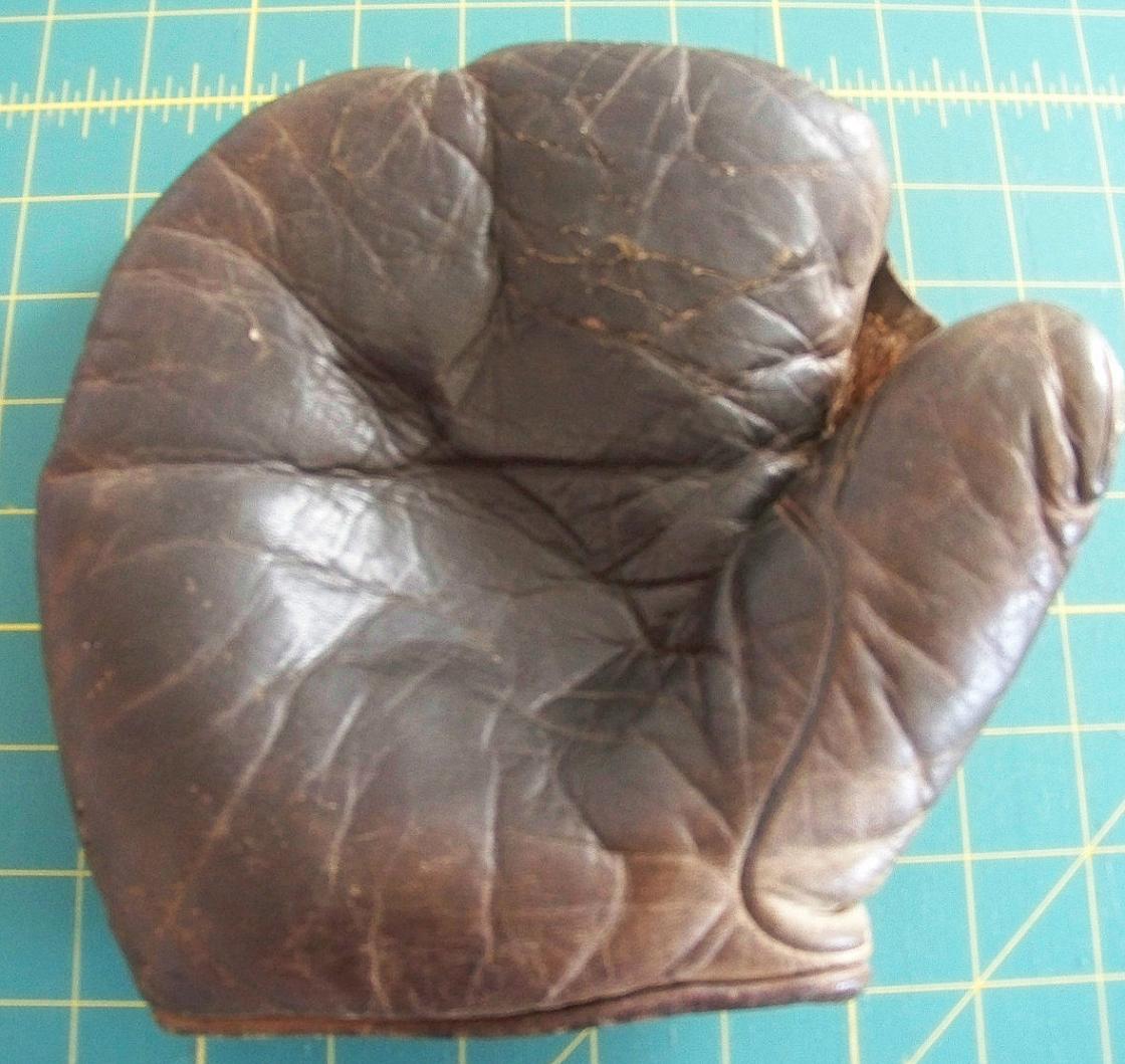 Rare 1920's Goldsmith "Carl Mays" three finger model 68 didn't meet the $600 min. Kind of an exercise in futility with no photos of the endorsement posted. Could be too expensive but a great looking glove, maybe one of the best despite a few loose heel lacing eyelets. Looks like most of the factory markings are present. The logo button is tarnished. The interior has little wear. With a little TLC this could be a stunning glove. .