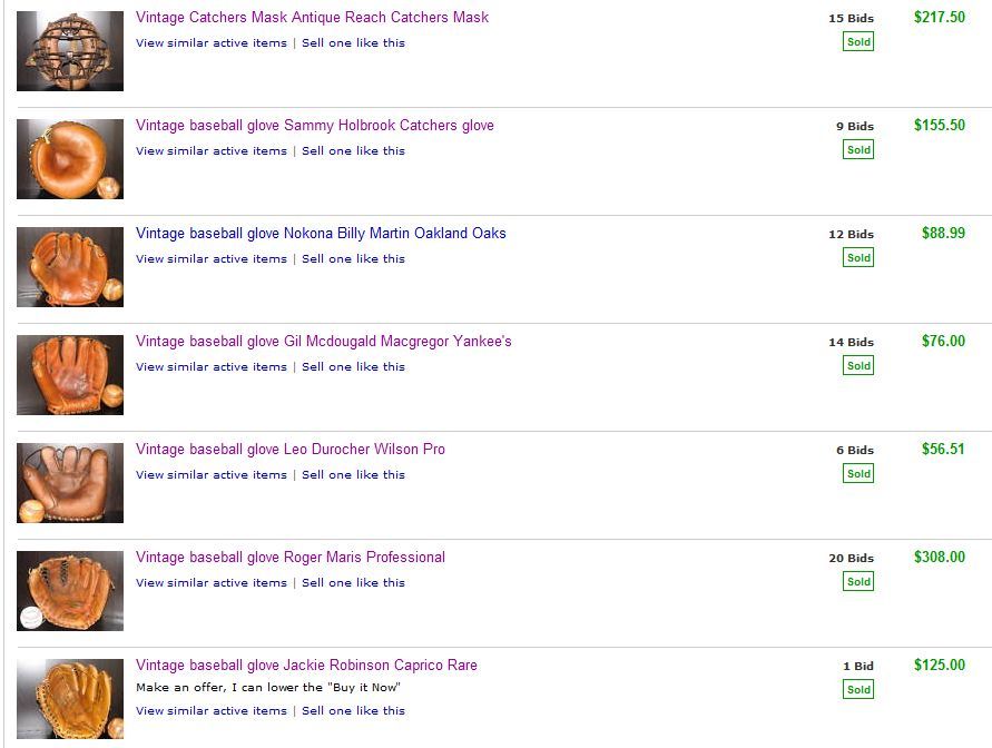 Discuss interesting gloves listed on eBay or other auction houses.