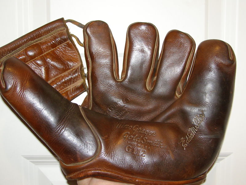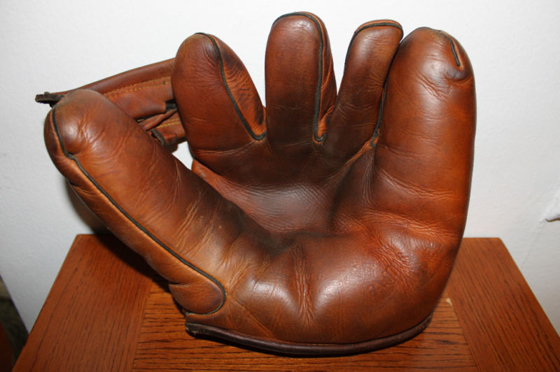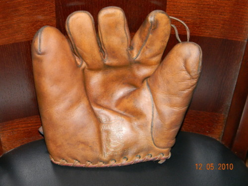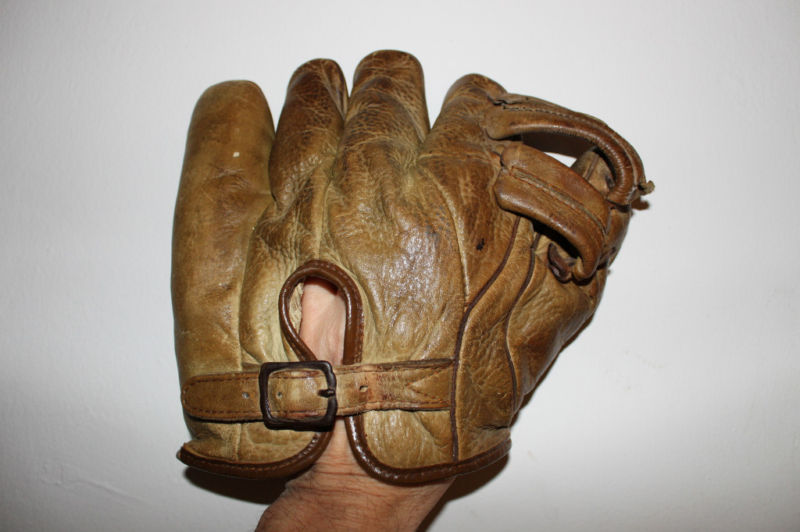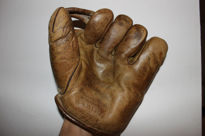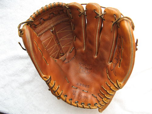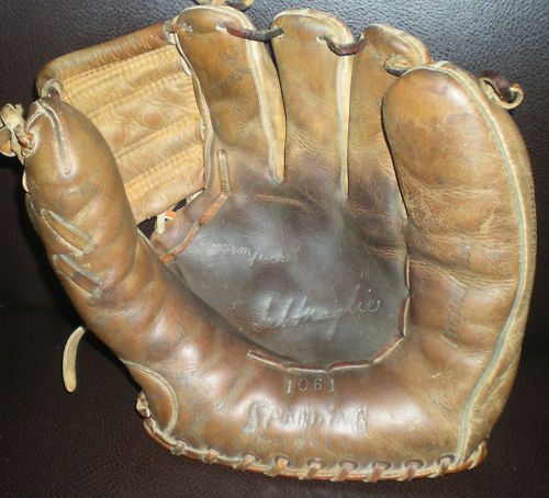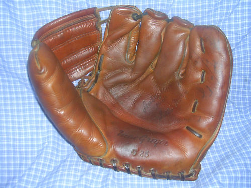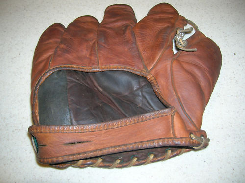 A nice 1950's Spalding "Sal Maglie" model 1061 sold for $25 on ebay. Top of the line in its day. Pre-formed pocket lacing. Diagonal lacing on the thumb is part of the V-Anchored web, a sure sign of a quality made glove.