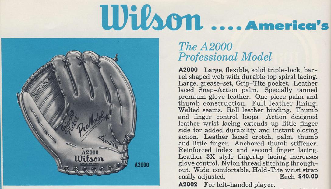 from a 1962 Wilson catalog, their top model glove at $40