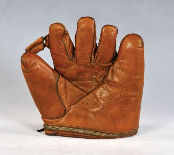This 1930's Spalding sold for $42 on ebay. I knew it was similar to the "Babe Ruth" model but didn't see a hint of stamping in the palm so I let it go. maybe the new owner has more info.