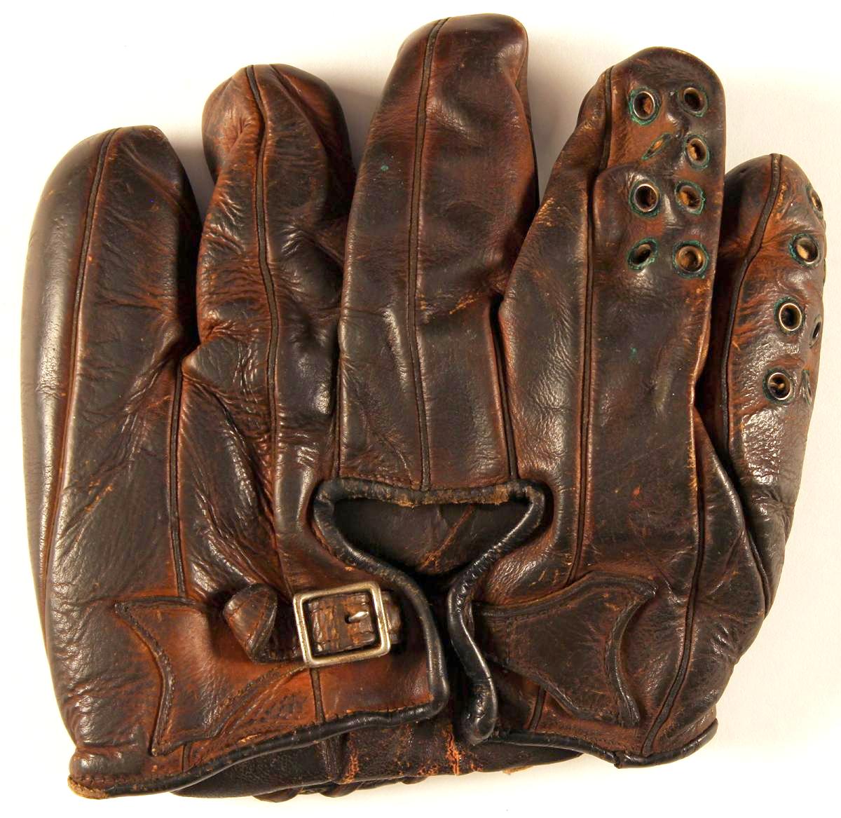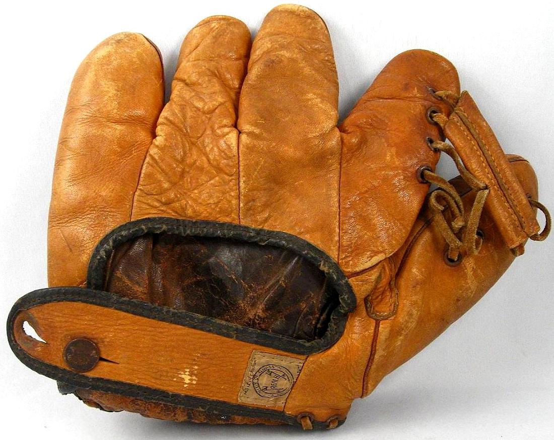 A crescent webless "workmans" glove sold at auction for $1100. Looks like a Reach/Spalding but no manufacturer ID present.