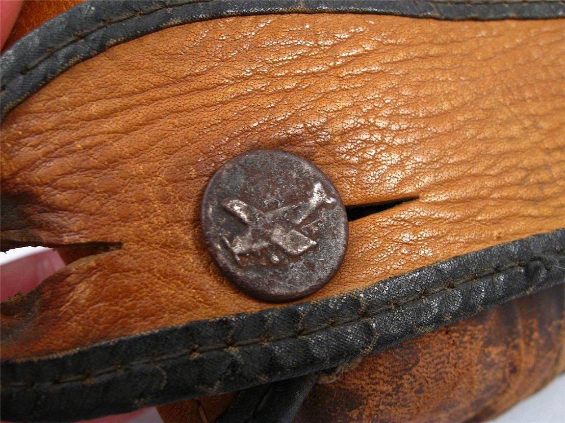 Pretty cool looking Stall & Dean "Sam Chapman" glove with the "fishtail" wrist strap. No webbing left but looks like it could have been something like a "Rainey Trap" or intricate tunnel webbing. The 16 grommets used to anchor the web is interesting in itself. Looks in good condition despite a fair amount of play. S&D came up with some crazy glove designs in the 1930-40's. This one was pretty much a bargain at $60.