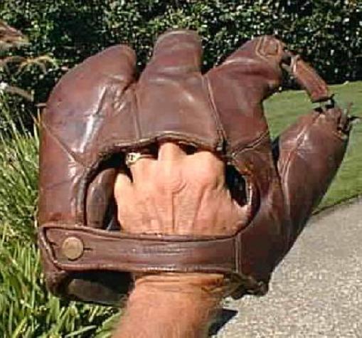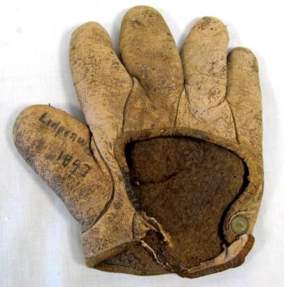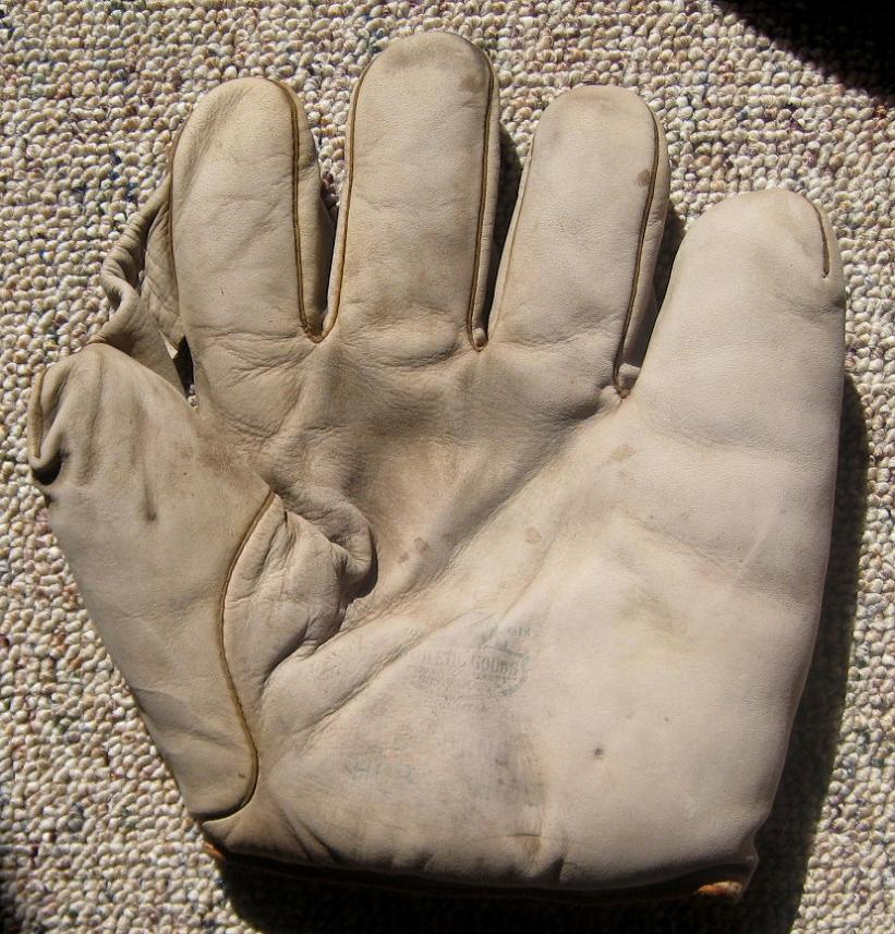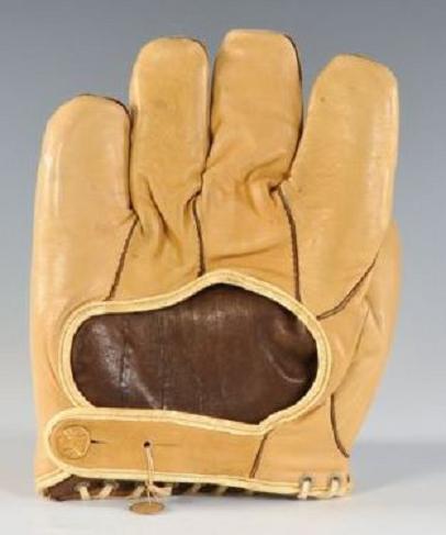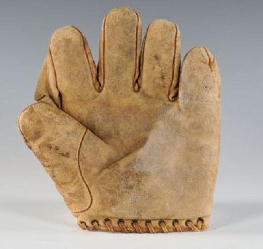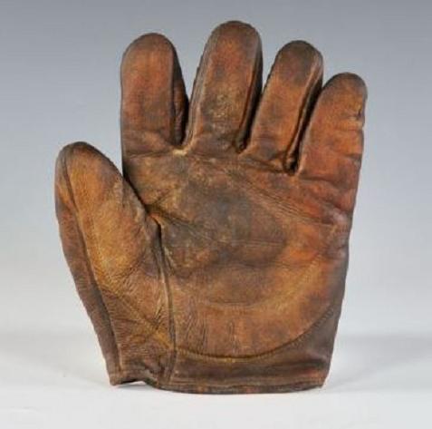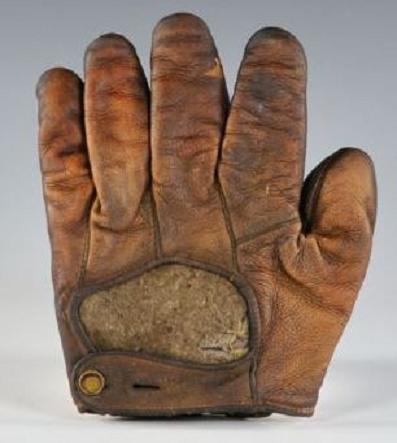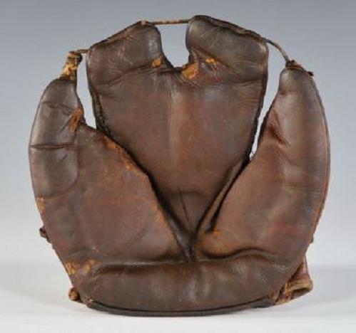 An 1890's crescent pad 'Workman's" style glove sold for $960 on ebay. The front displays nicely. The wrist strap is partially shredded on the back.