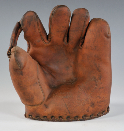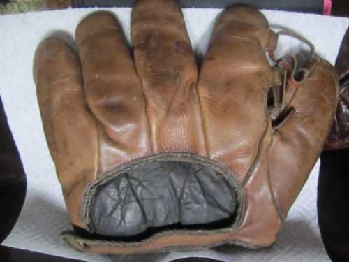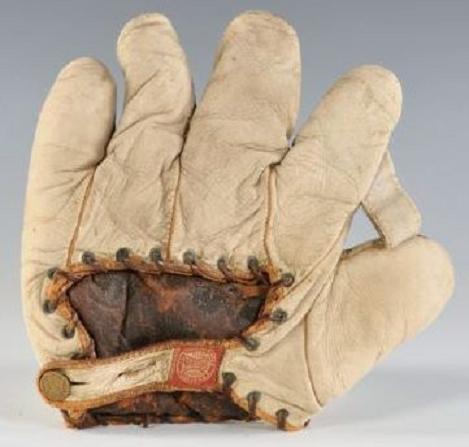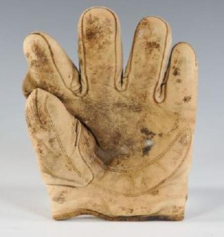 1930's Wilson "Rogers Hornsby" three finger glove sold for $310 on ebay. The glove has seen a fair amount of wear with some loose seams. The stamping is still strong in the pocket.