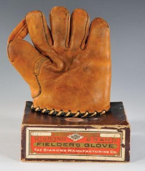 Early 1900's Full web glove with wool lining sold for $218 on ebay. The glove is in real good shape with an interesting cloth patch on the wrist strap. It is from the Norvell-Shapleigh Hardware Co. of St. Louis, an early version of the "Diamond Brand" gloves.