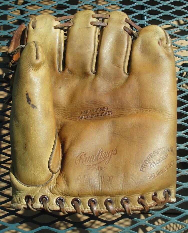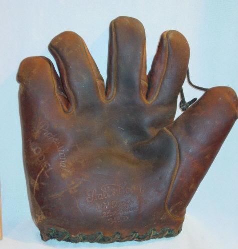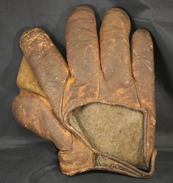 This Spalding lefty crescent fielders was a great deal at $717, and looks like it has great cleanup potential (especially if that is only pencil writing on the back of the fingers). Someone got a nice tall one!