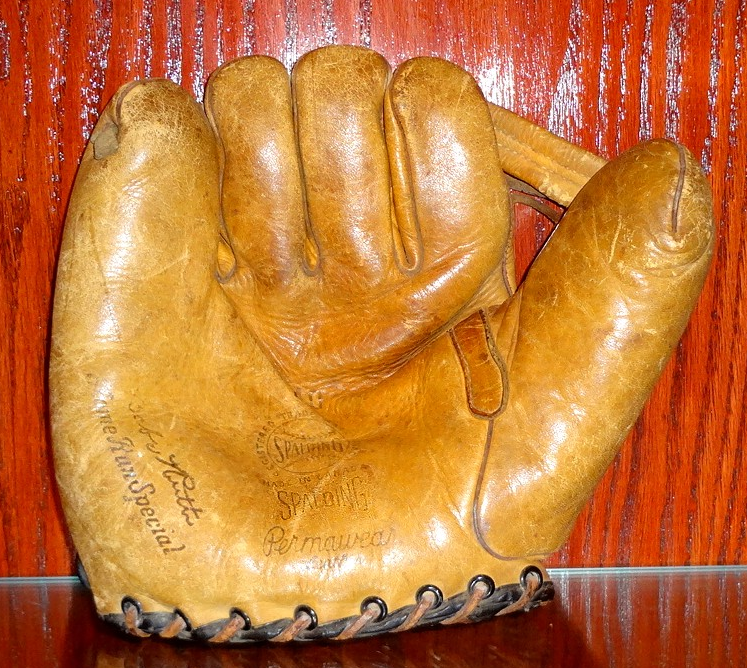Second is a 1930's Reach glove that sold for $197. It has "Home Run Special" stamped on the heel but no "Babe Ruth" endorsement. Some Canadian made gloves omitted the endorsement, possibly for legal or contract reasons. I owned a Canadian Spalding model MO that should have had the Ruth endorsement but it was also missing.