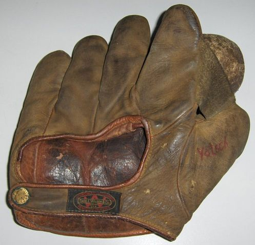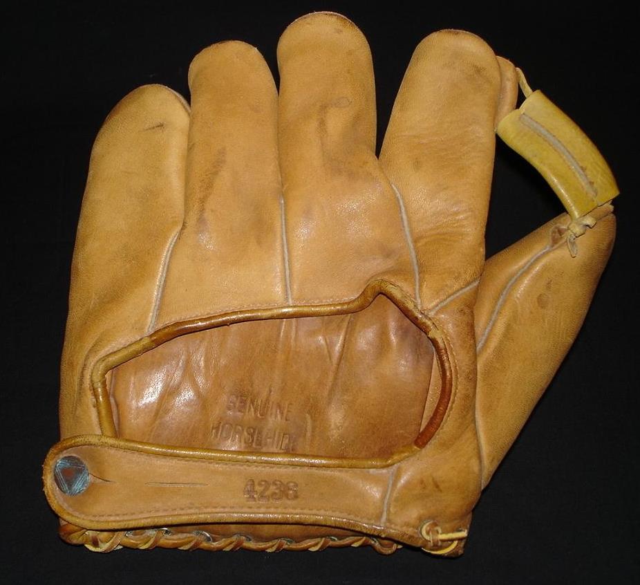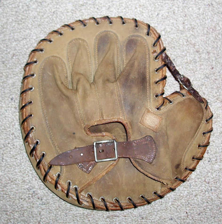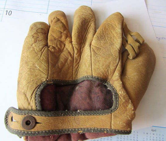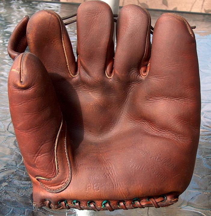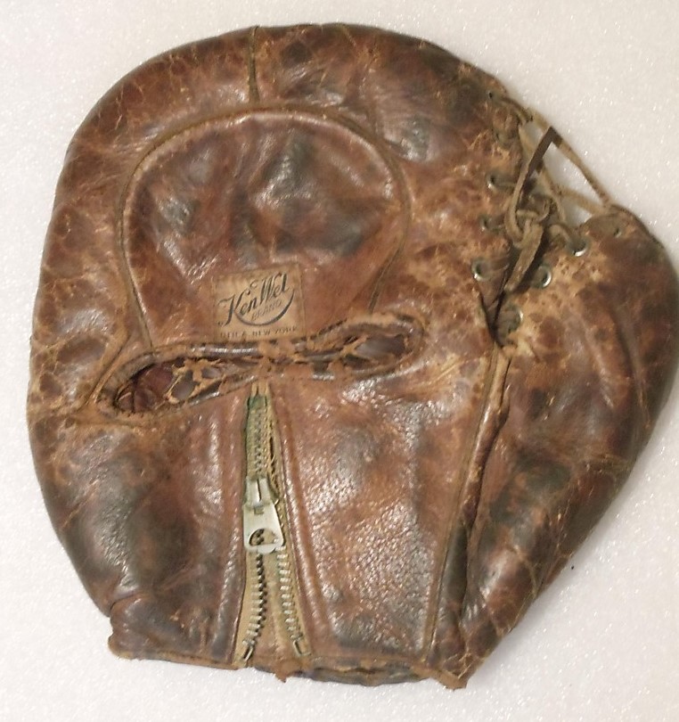 A KenWel zipper back base mitt sold for $1600 on ebay. Mitt is intact but in well used condition. Seller states this is a "Lou Gehrig" endorsed model although there was an unendorsed "Professional Model" in the mid 1930's. Markings on the front are obscured by creases in the leather. If it turns out this mitt has a legible endorsement then the buyer got a good deal.