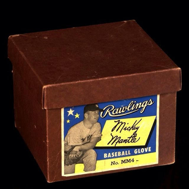A 1950's Denkert "Mickey Mantle" model G84 with box sold for $762. Glove in unused condition with a nice looking box.