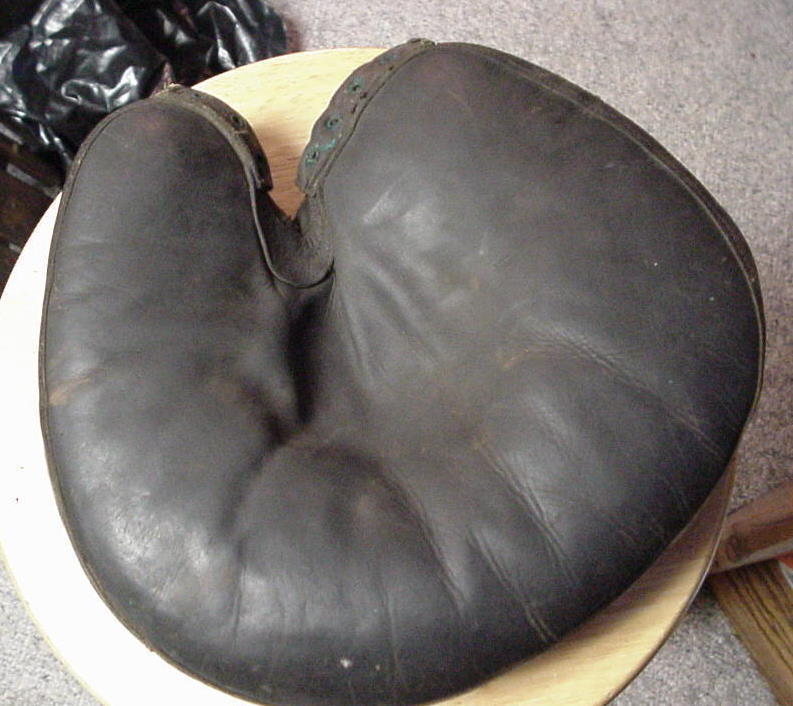 Another nice Spalding full web crescent glove sold for $687 on ebay. This one shows more wear but I personally like the leather lining better than the wool. Real nice cloth patch. if anyone wants to let go of one of their flat top finger gloves, even without a crescent palm, let me know.