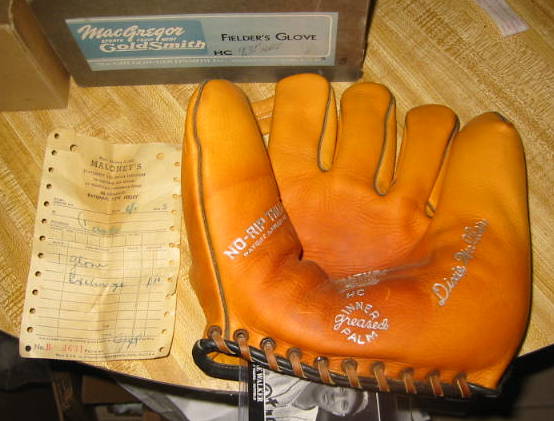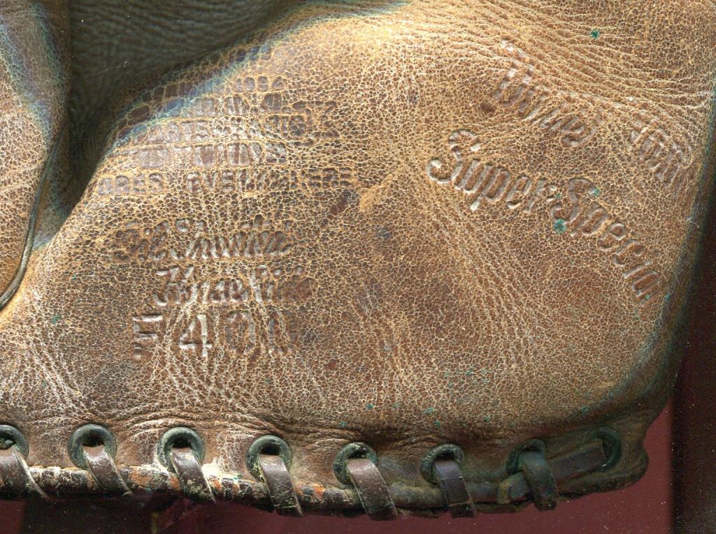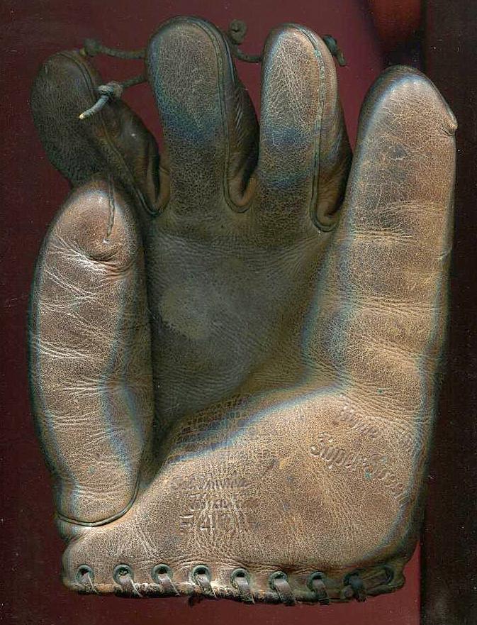 Third is a TOC mitt with an intricate buckle web and early patented heel lacing. Looks to be in great condition. It sold for $340 on ebay