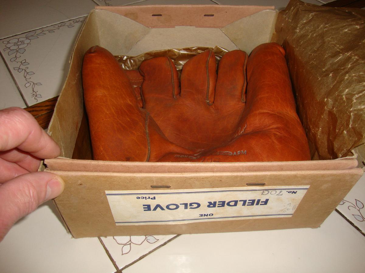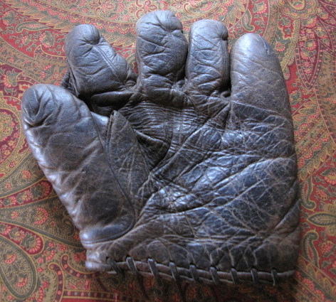 Second is a Wright & Ditson crescent pad model with an early TOC W&D logo on the patch. It sold for a tidy $381 on ebay. just the look of the mitt against the laminate strips of the countertop, I think this may be a behemoth.
