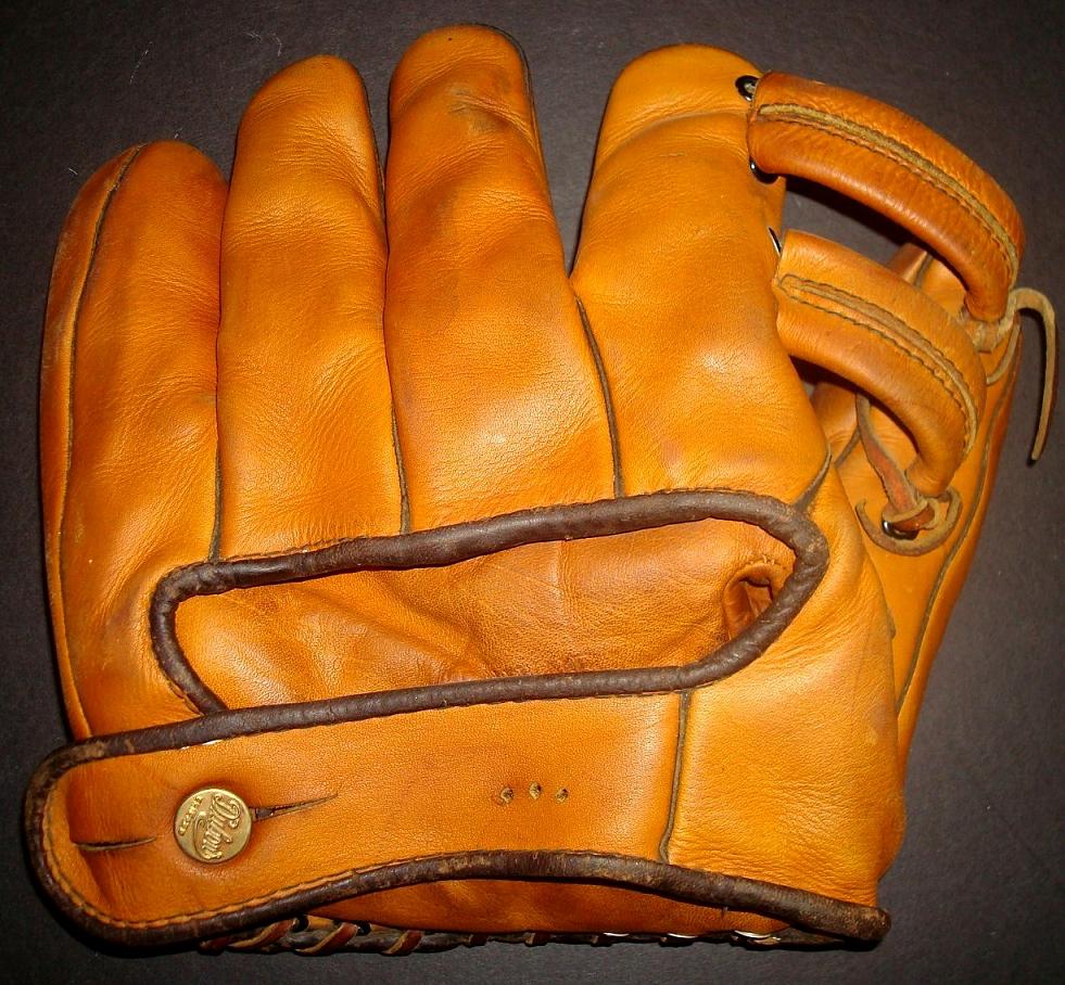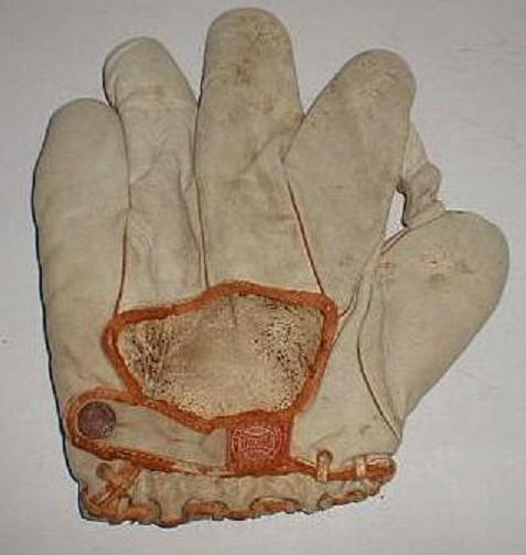 Nice glove from Bob McCann, a Spalding white leather 1" sewn web for $440 on ebay. Can't quite make out the model number but looks like a good quality glove.