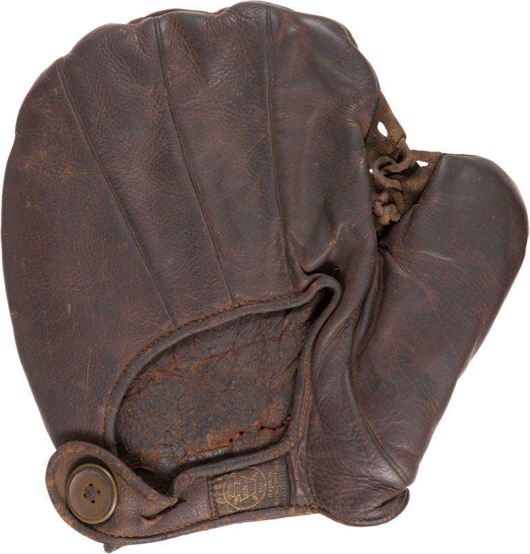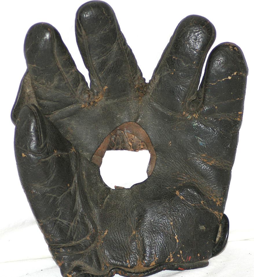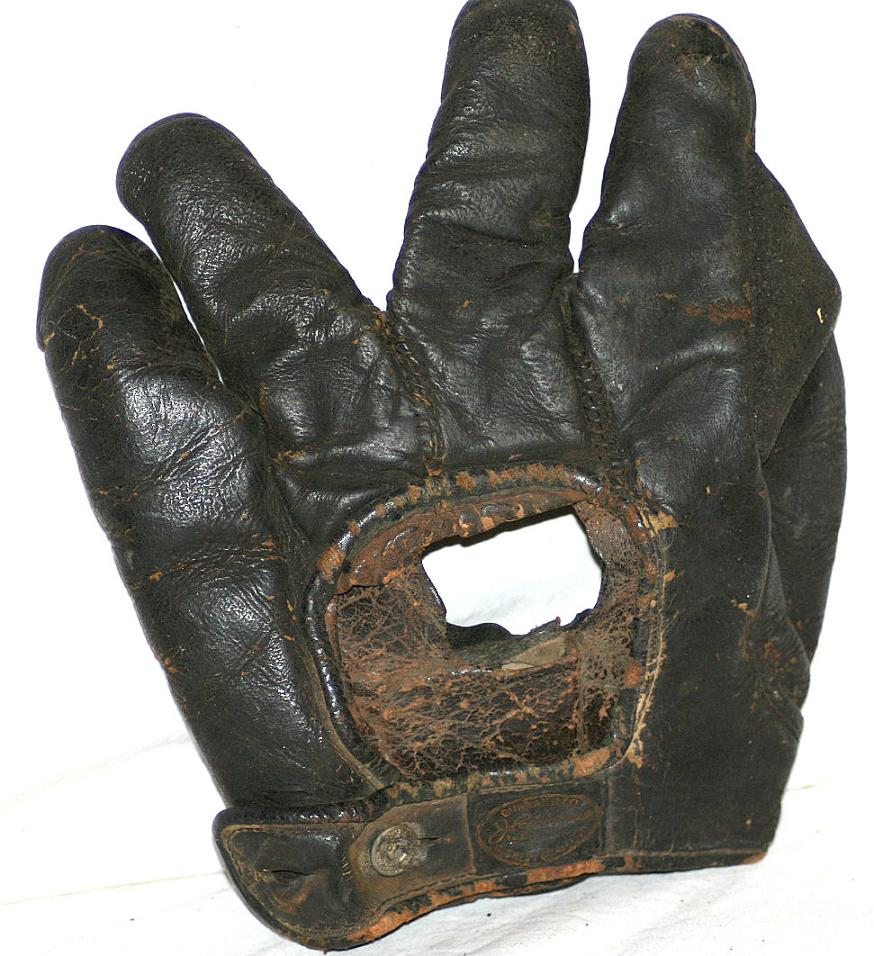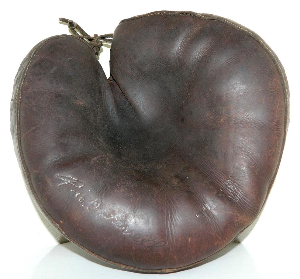 Nice Reach 1905-15 fielders mitt sold for $478. Pretty cool looking and in decent condition. I like the full web with adjustment holes and lacing. Cloth patch is in good shape. A makeshift button looks to have replaced the original.