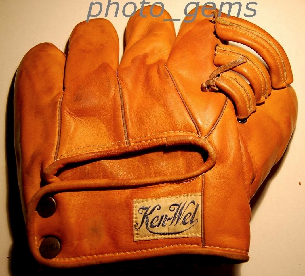 Just a brief word about the Chief Meyers Mitt. I was the winning bidder, coming out of glove collection add-ons hibernation to go after this one. It's a model I've wanted for as long as I've known enough to want it. Maybe 15 years or so. I received it yesterday and it's fine; great strong stamping and original lace. just a really nice example. The thing that I have to mention is that it's much darker than the photos suggest. Much darker. I like it, I'm keeping it, but I could easily see someone else getting really annoyed by the difference in color between the photographs and the actual mitt. It's clear all these seller's gloves had the same brightness to them (as pictured). I would have preferred a more accurate set of photos when considering it as something I wanted to go after. Just sayin'.
