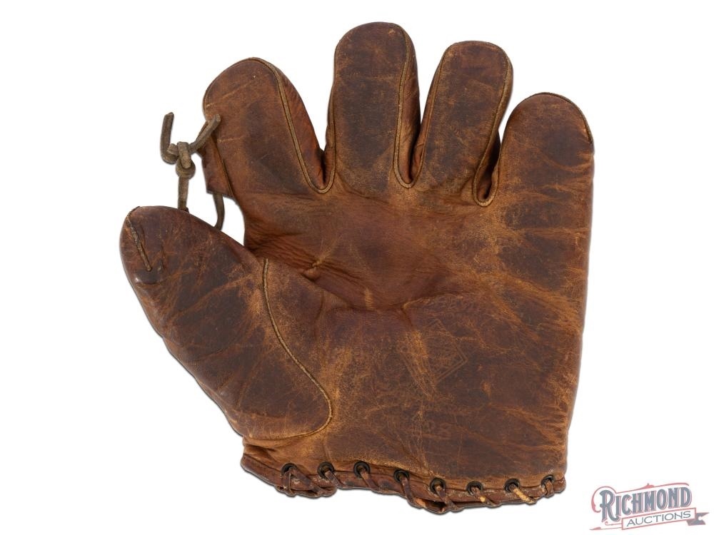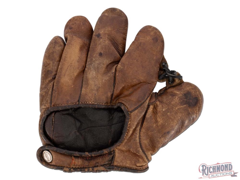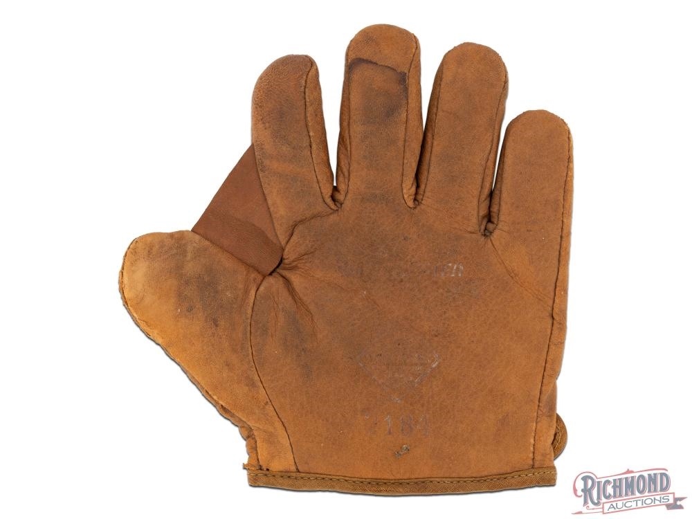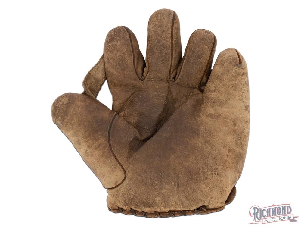 A 1930's Spalding Babe Ruth HRS model glove sold for $394. Intact factory stamps on the face. A lower line model.