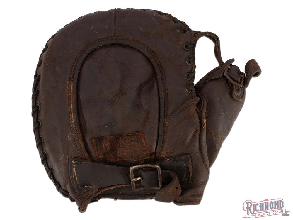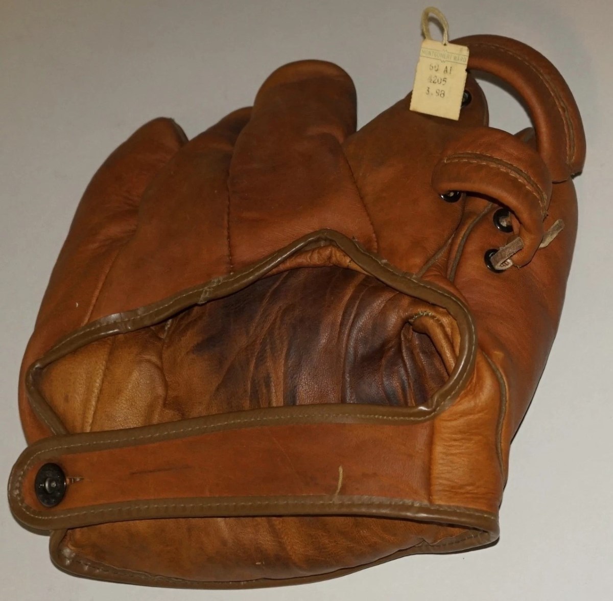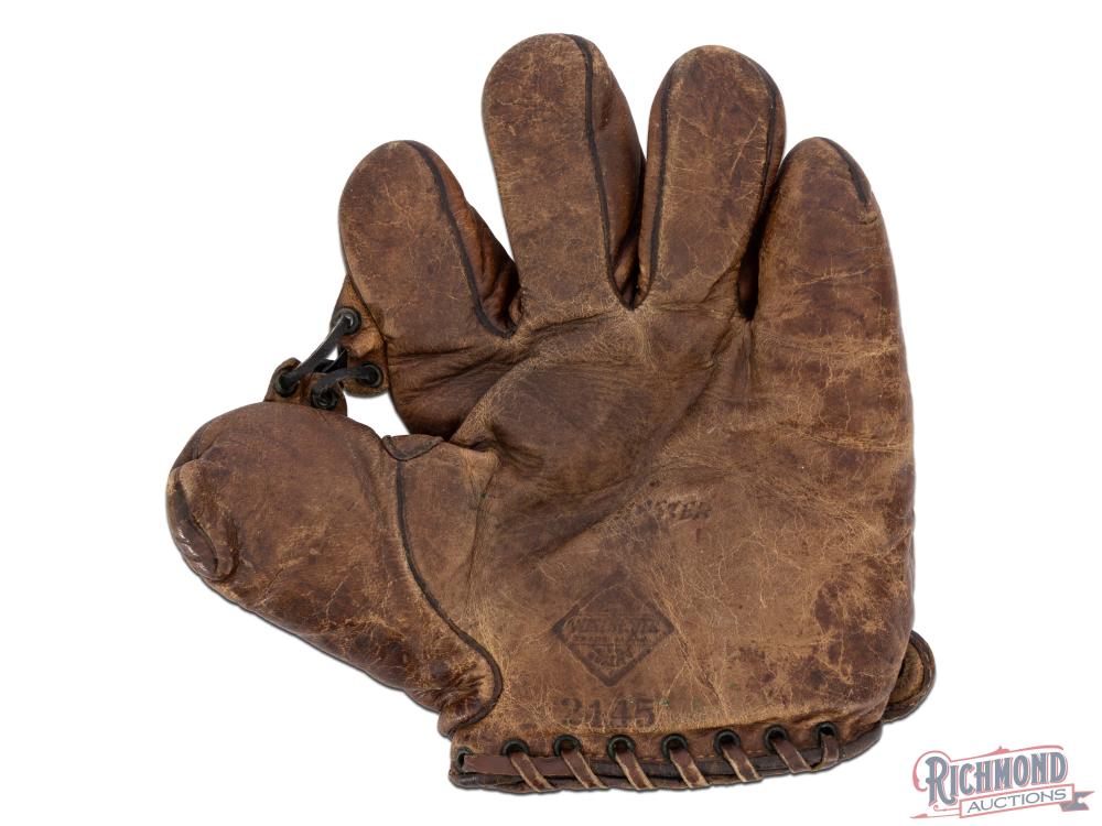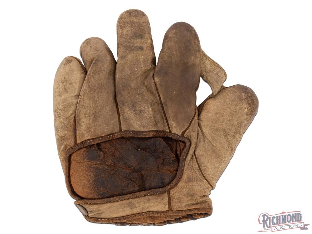 A 1930's Spalding Babe Ruth HRS model glove sold for $394. Intact factory stamps on the face. A lower line model.