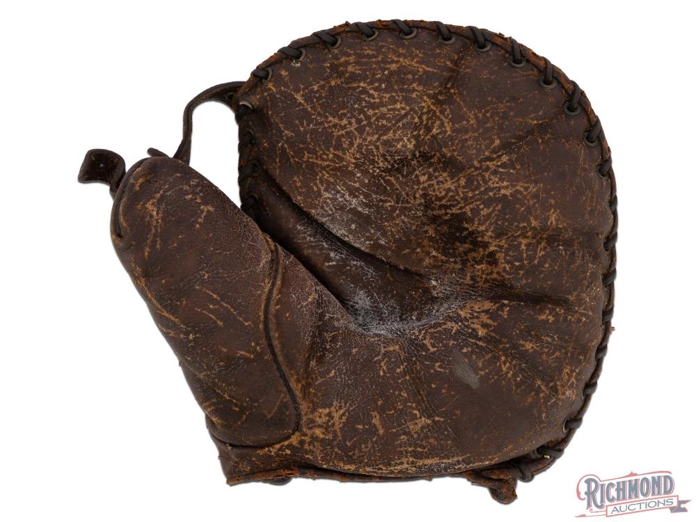 A circa 1910 Spalding full web baseball glove sold for $585. It has the typical narrow wrist opening and diverted finger seams. It's all intact, high quality and in decent condition with general play wear.