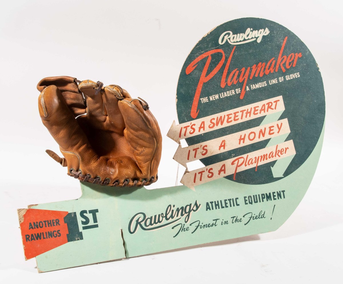 A 1950's Rawlings Playmaker glove with counter display sold for $650. All the money is in the cardboard display which is in outstanding condition.