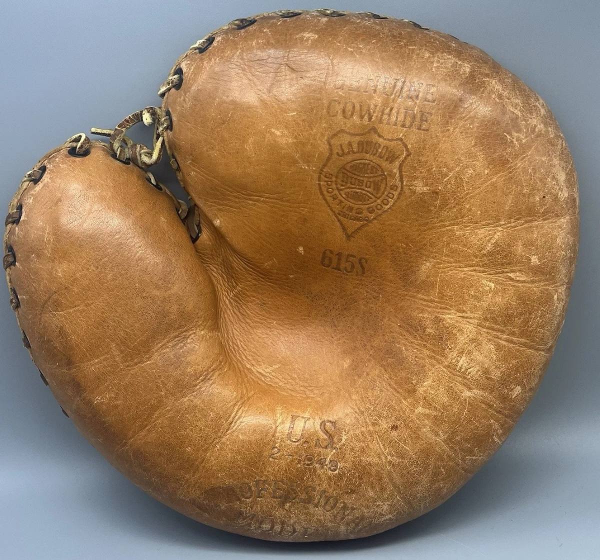 A 1949 Dubow model 615S catchers mitt sold for $40. A high quality "Professional Model" Military issue mitt in great condition.