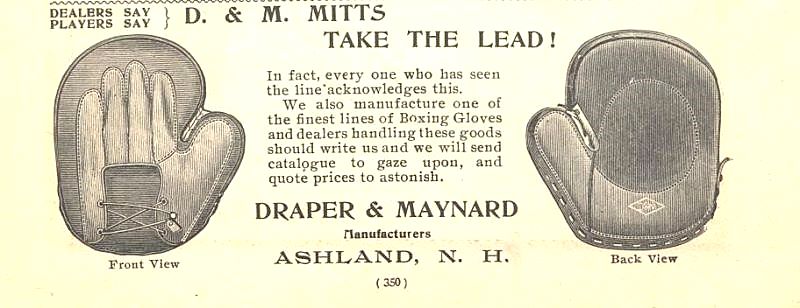 This last is a really stunning little ad for an 1896 D&M mitt. I found pics of a whole bunch of these old glove ads. I am sending along to JD. He will be able to enlarge past the size restrictions here and there are some nice Ratsch-Peerless, Spalding, Monty and others.