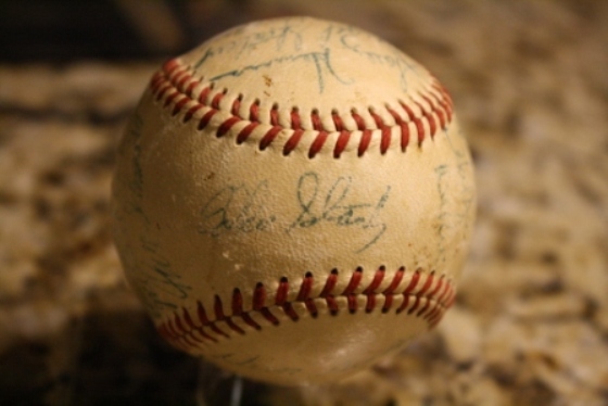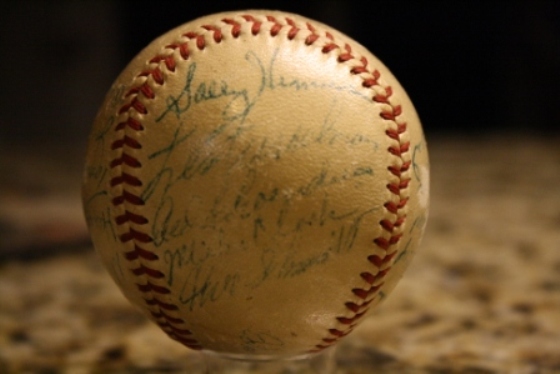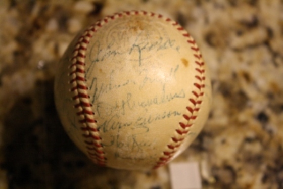 My Grandfather was given this ball in 1952 when he was a kid and sick in the hospital by Wilmer "Vinegar Bend" Mizell. My grandfather's father was a preacher at the church that Mizell and his family went to and when he heard that my grandfather was sick he got the 1952 team to sign a ball for him. The signatures on the ball are as follow:
