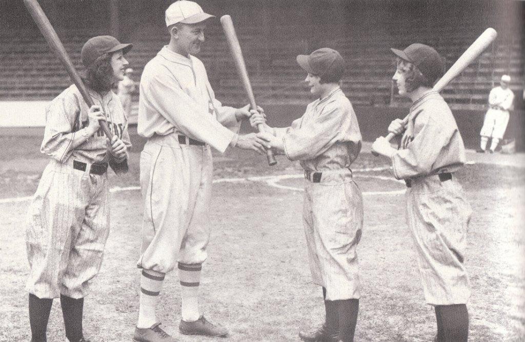"Now that you ladies know how to grip the wood, let's work on that unassisted triple play that ol' Ty was tellin' ya about"