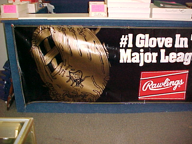 I was just wondering if anybody out there has ever seen a Rawlings "Heart of the Hide" glove banner, that measures about 8" long by 3' high. It's black in color with a big gold colored "Heart of the Hide" glove on the left side. On the right side it has in white writing: #1 Glove In The Major Leagues and then under that, it has the Rawlings Logo. Anyone out seen this banner?