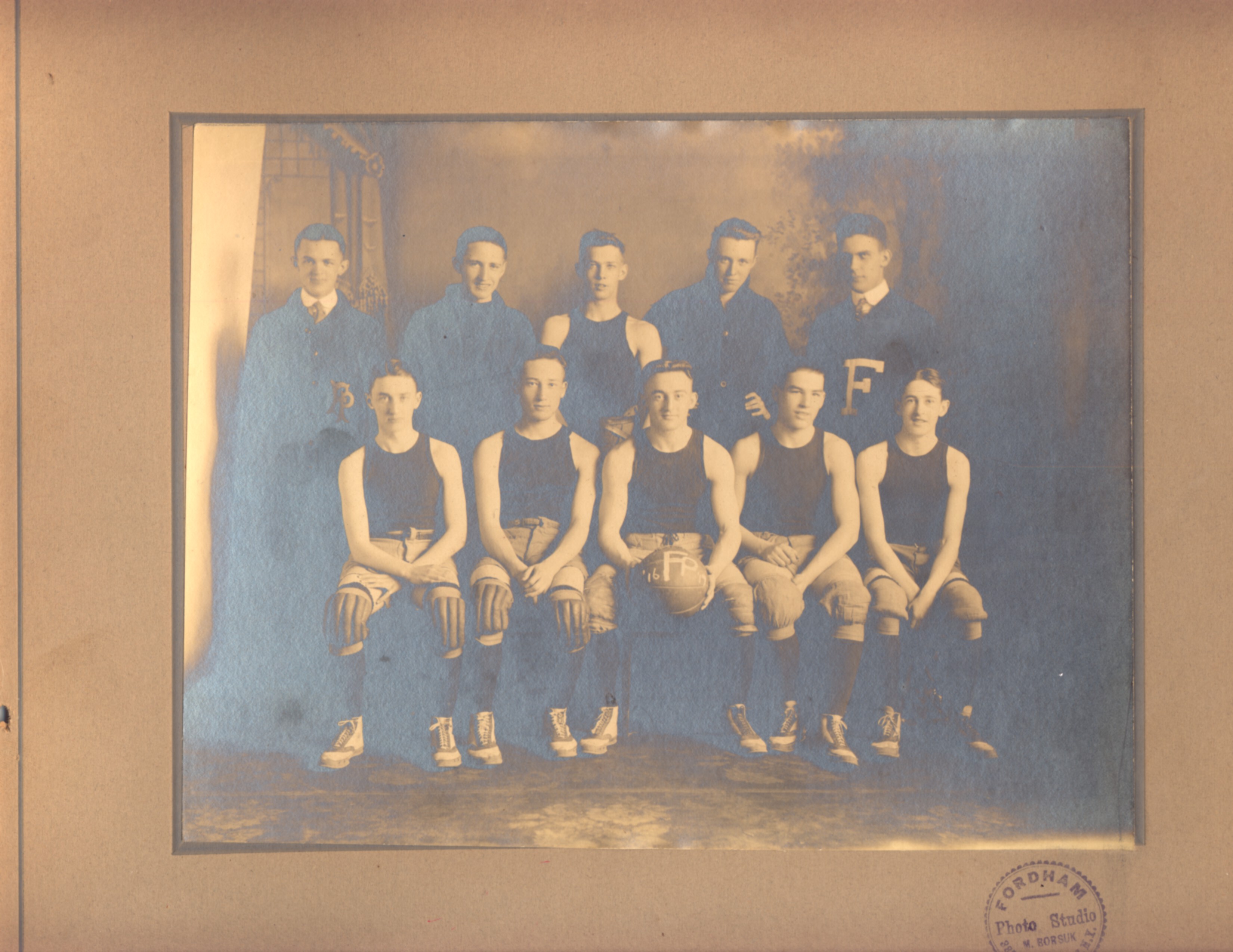 While at the flea market this past Sunday morning I came across a 1916-17 basketball team photo. After examining it I noticed it had a Fordham stamp on the bottom and because the price was right, and the photo displayed well, I went ahead and bought it. After shopping for a few more hours I went home and looked at the photo in more detail. One of the players was wearing a "FP" sweater and I quickly discovered through the wonders of the internet that Fordham Prepatory school was a pipeline to the college. As with most photos I find, if I can identify the school, I always search to see if there could possibly be someone famous pictured. Low and behold it seemed that Frankie Frisch (The Fordham Flash) was in school around this time. I couldn't find any photos of him at Fordham but compared a head shot from his playing days to a gentleman in the photo I thought could be him. This is not a strong suit for me and I knew I was going to biased wanting Frisch to be in the photo. I asked a couple people for their opinion and they agreed that it most likely was Frisch. Needing more concrete evidence, I emailed the librarian at Fordham Prep to see if they had any yearbooks or old photos that could confirm that Frisch was in the photo. Very quickly the archivist for the school got back to me and was very happy to report that it is Frankie Frisch in the photo. They did not have that particular year's photo, but a preceding one with him pictured and named. The archivist also shared a bunch of history of the school during that time period when Frisch was enrolled. Fun stuff!