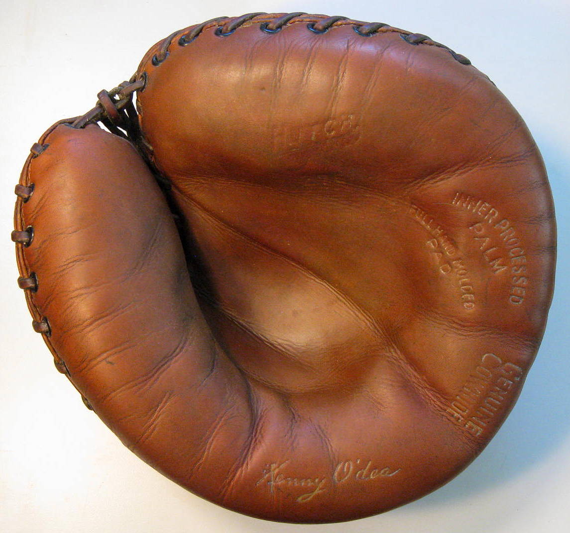 1940's "rolled lace" Carmona basemitt. Professional quality!
