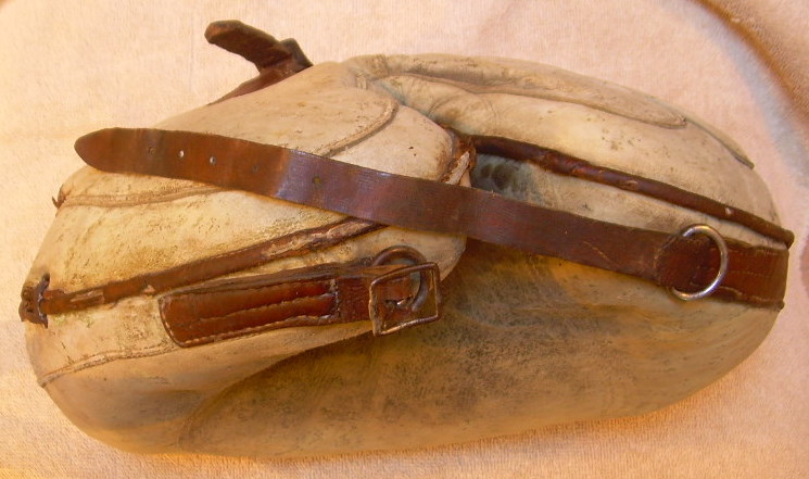 I replaced the canvas reinforcement inside and re-stitched the pattern of three rows of holes around the pocket by hand. it took a number of days. I had been buying odd pieces of antique leather from flea markets and had one to use for the buckle web strap. I needed a piece about 10" long. I carved out a section at the end of the new strap to lay in the 1" remnant that was still on the mitt. In woodworking terms it is called a rabbet joint. It came out pretty flush and I was happy with the color match.