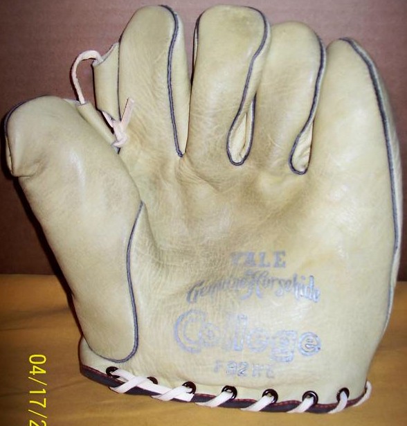 This George Kelly is beat to hell, but very intriguing. First off, it has problems. It needs a good cleaning, it has to be relaced and the buckle strap must be resewn. Whoever won it, please contact William at Huntington Base Ball Co. to do the job correctly. Just trust me, you won’t be disappointed. Now, what fascinates me about it is that it is the only Goldsmith Kelly I’ve encountered. I’ve watched endorsed gloves for more than 20 years, and I’ve never seen another, though I could be mistaken. Goldsmith had some of the earliest endorsements, so there is a high probability this could be the oldest Kelly found. Beyond that, I love the odd shape of the “V-notch” on the back of the mitt. One cool mitt that a smart buyer got for only $169. I’d love to see it after it’s been attended to.