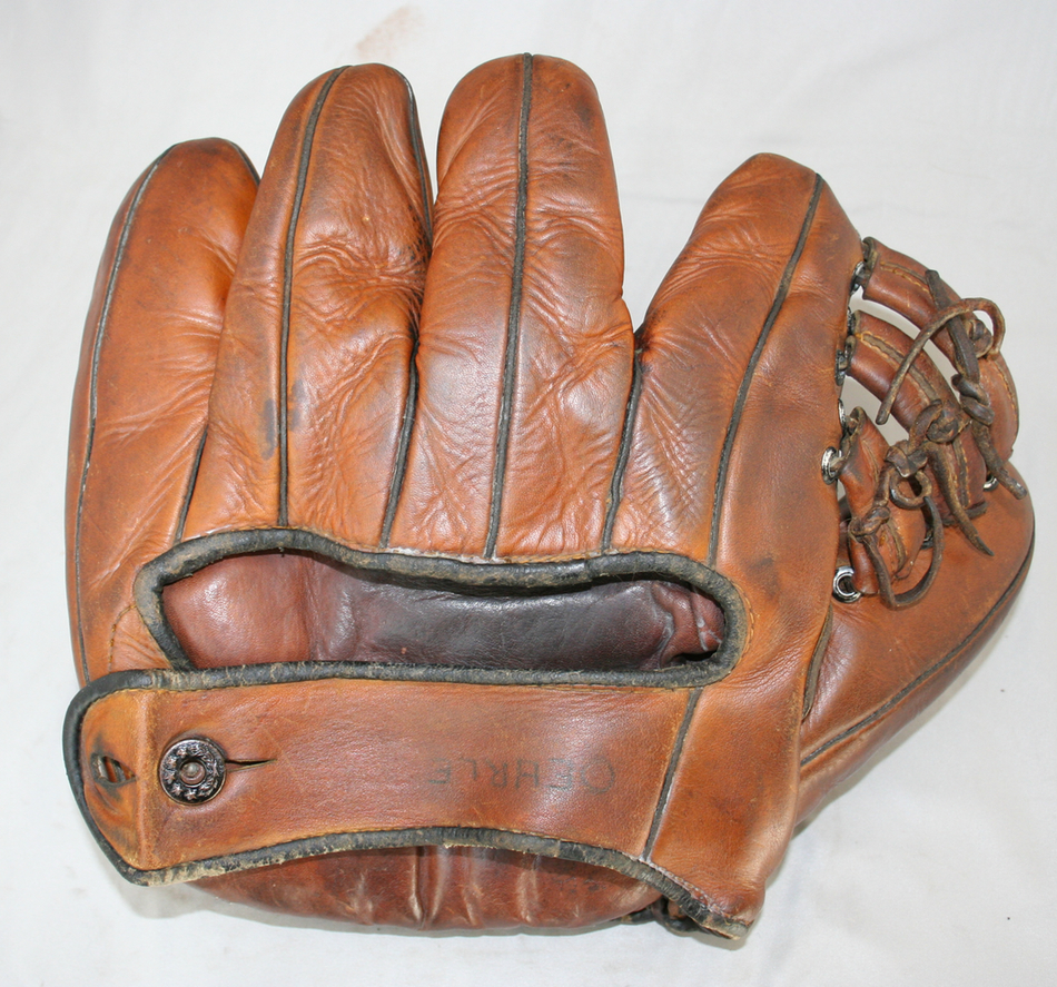 The annual Brimfield Antiques show is this week so we trekked up there early this morning in freezing temperatures to see if there was anything worth buying. Had a good day buying and selling. Picked up some gloves inlcuding an OK Doerr model I didn't have, a 1920's Winchester, 2 late 20's Goldsmiths, a JC Higgins catchers mitt, a Ken Jones split finger, a Cliff Heathcote split finger, a more modern Nokona Kangaroo glove. Bats included a Kren Spcieal, Simmons Swatter, LS 40LG Gehrig, Ted Klu/Chuck Klein pro models (post career). Picked up a sweet lot of press photos and a pair of OK boxing gloves - they have a sewn tag - first pre 1950 OK item I've seen with a sewn tag.
