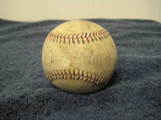 8.) A red and blue stitched baseball looks like it says Official League. Went out on a limb I don't know too much about baseballs.