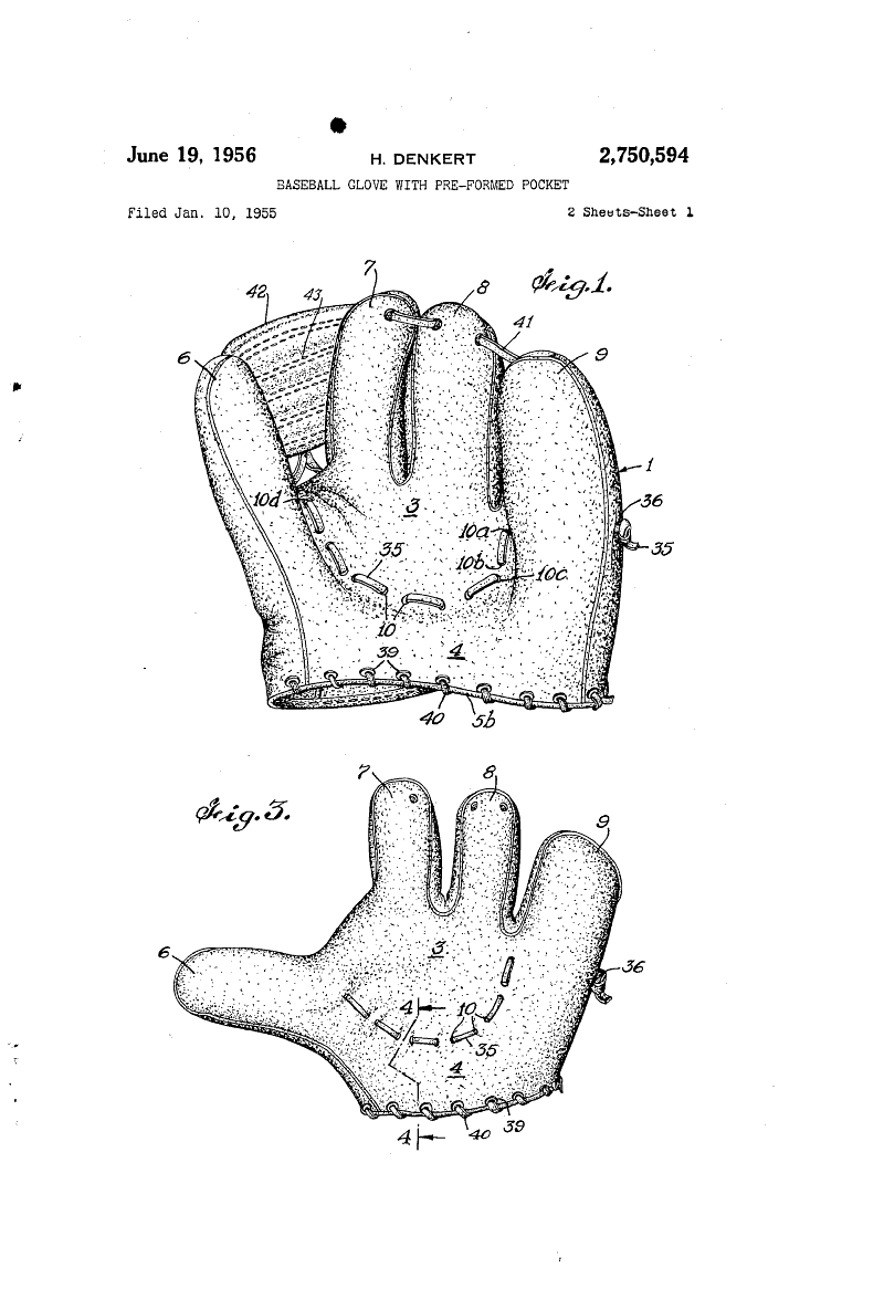 The patent number confirms it. It's for a unique method of palm lacing to pre-form the pocket and it was issued to Denkert.
