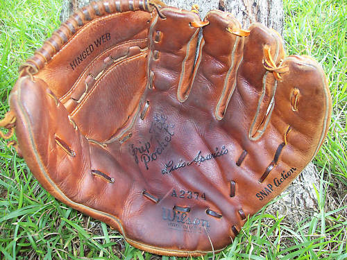 The second is a Victor Crescent pad mitt with a nice buckle web. Of the two mitts, this is definitely the one to go for. Got to love the rare Victor cloth patch on the back!