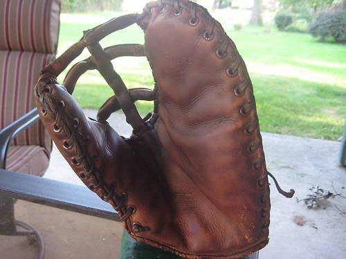 This is a real nice Higgins "Bob Buhl" model 6-finger glove and a nice collectible. This early 6-finger model was made by Wilson as the "Ball Hawk 6" model and was one of their nicer models. Went for $26 on ebay. "Bretman" pointed out an August posting regarding an "under the radar" Babe Ruth glove on ebay. This too, but in a very minor way, is another "Stealth Bomber"!