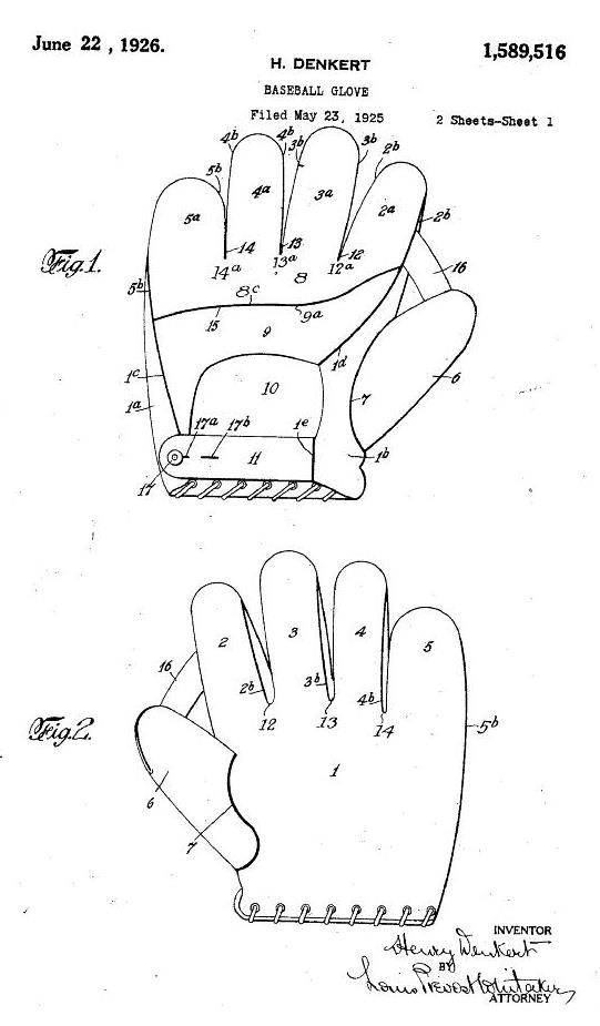 Brett, I think this may be the patent for the glove you posted. it's by Denkert in 1926. Pretty innovative for 1926!