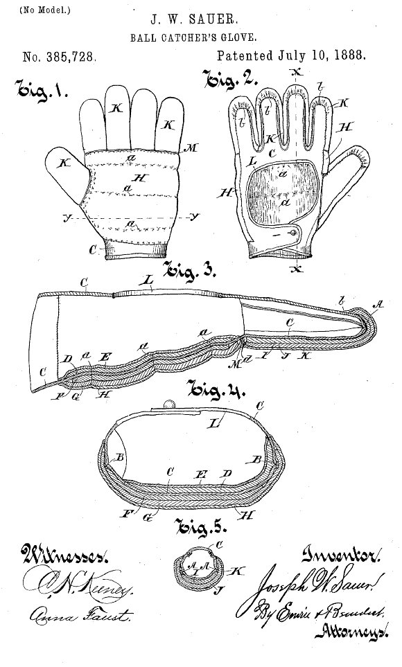 A unique glove recently re-listed on ebay that reflects the 1888 patent of Joseph Sauer.