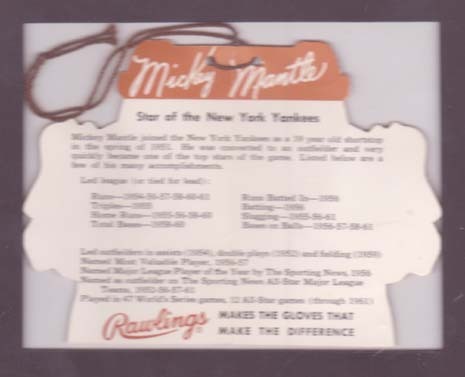Great looking "Mickey Mantle" hang tag sold for $306 on ebay. Would be nice to book end this with Jerry's "Babe Ruth" hang tag above. Interesting that hang tags have kept being used as advertisement all these decades. First thing to go in the trash was the ball players glove hang tag so they are rare and highly collectible.